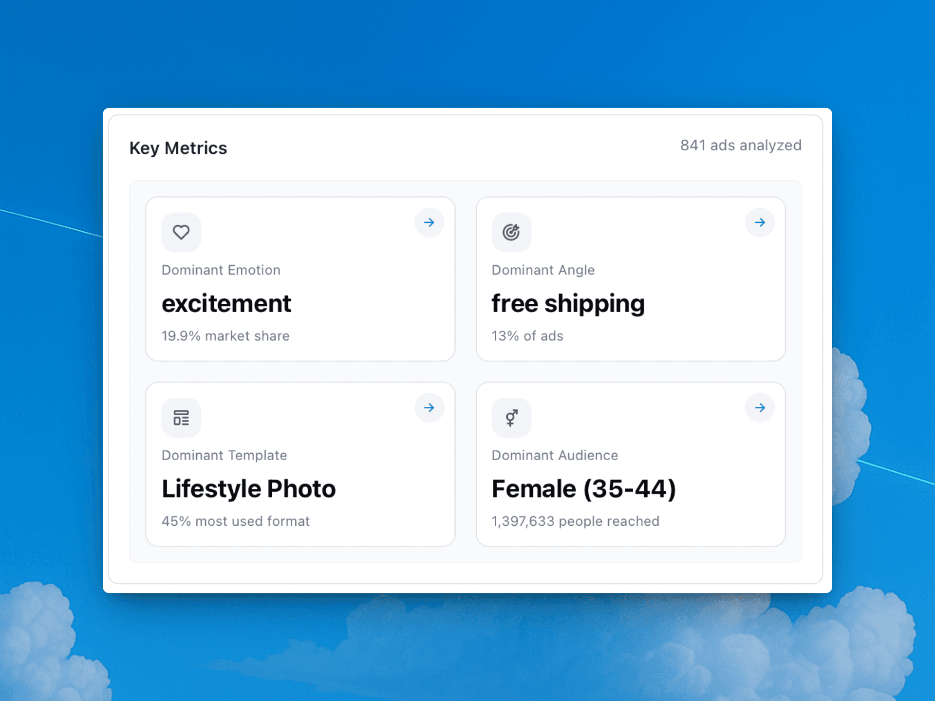 We analyzed 841 of their ads using Arcus, our competitor research tool for e-commerce, to see what makes their strategy work — and where the next opportunities lie.