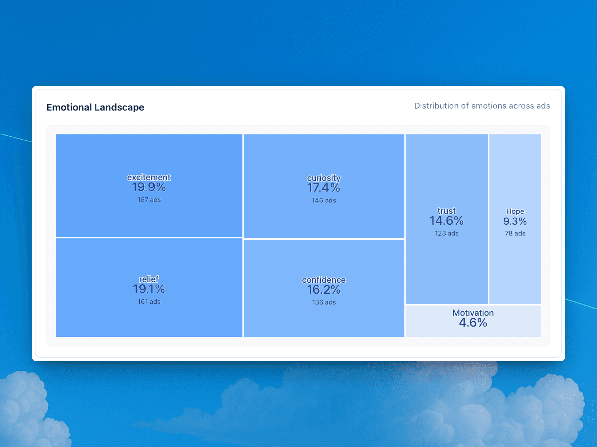 While excitement dominates, two other emotions — relief (19.1%) and curiosity (17.4%) — show strong potential.